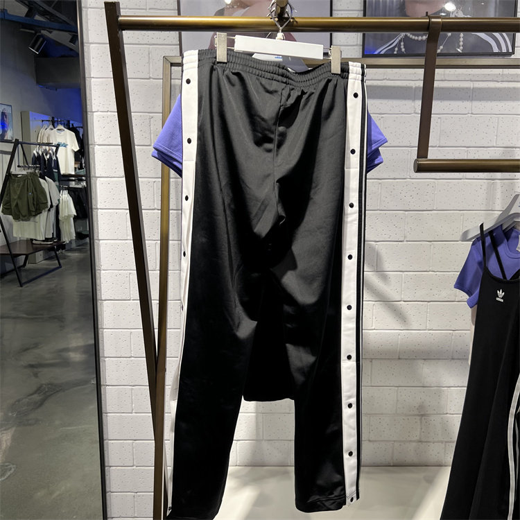 IU2519 阿迪达斯三叶草女子2024夏梭织三条杠排扣运动休闲直筒长裤由