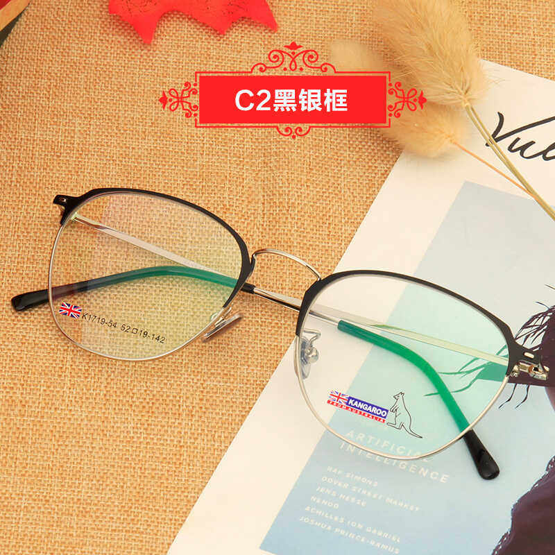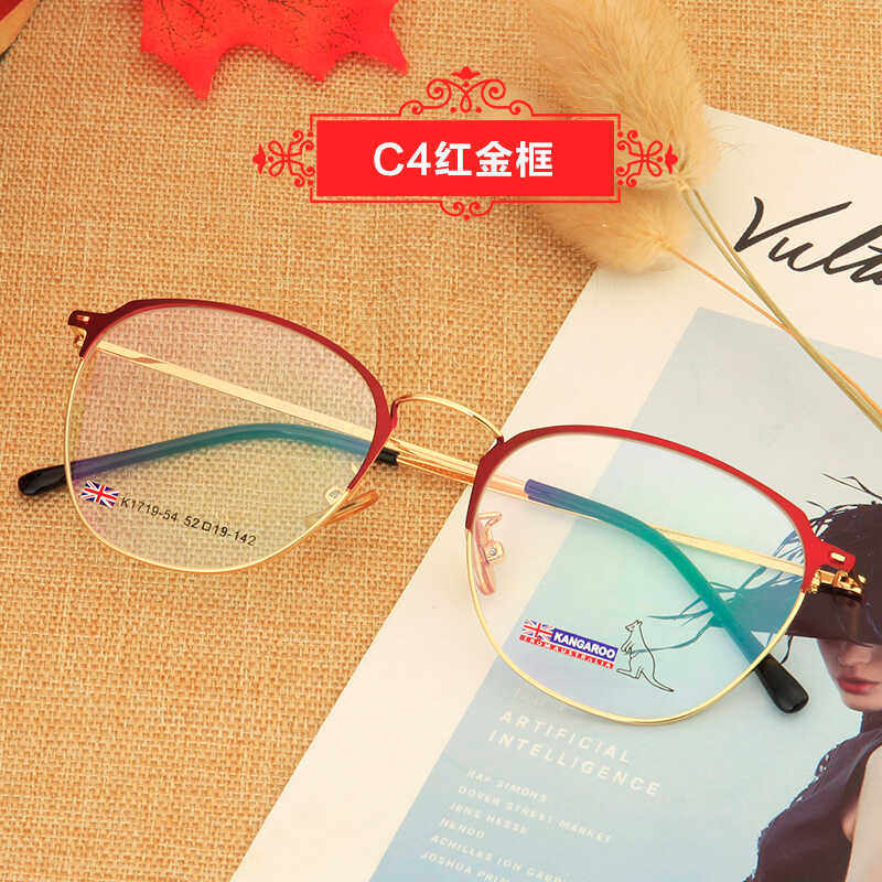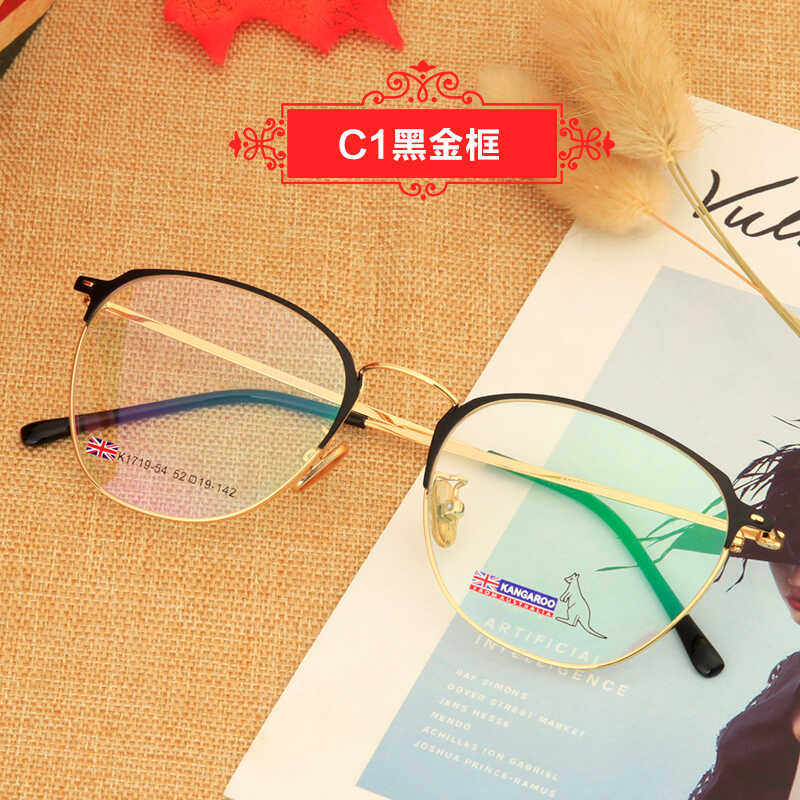文艺复古平光镜圆框近视框架配镜K1719 韩版 袋鼠圆形眼镜框女款