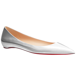 女气质名媛浅口内增高红底单鞋 2026新款 法式 银色尖头平底鞋 子大码