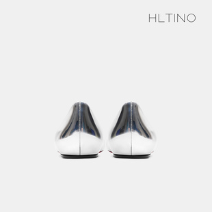 女气质名媛浅口内增高红底单鞋 2026新款 法式 银色尖头平底鞋 子大码由