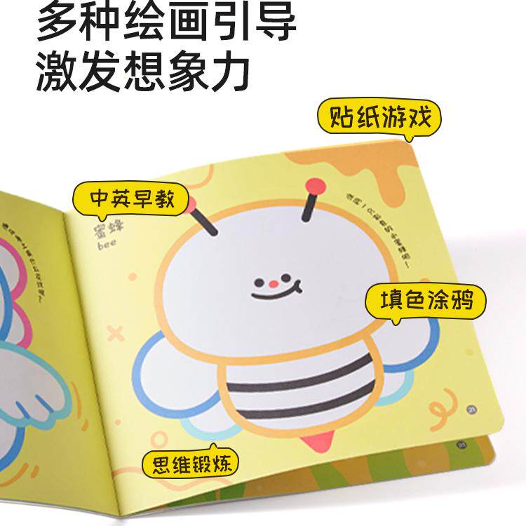 美乐童年随心贴画画儿童涂色绘本涂鸦画卷描红本幼儿园图画本画纸