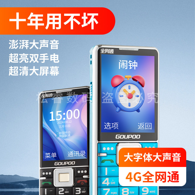 全网通4G5G直板老人手机大声大屏老年机通话录音自动免提超长待机由