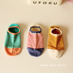 外贸ins潮彩色拼接撞色细条纹纯棉船袜吸汗透气防脱落低帮袜子女