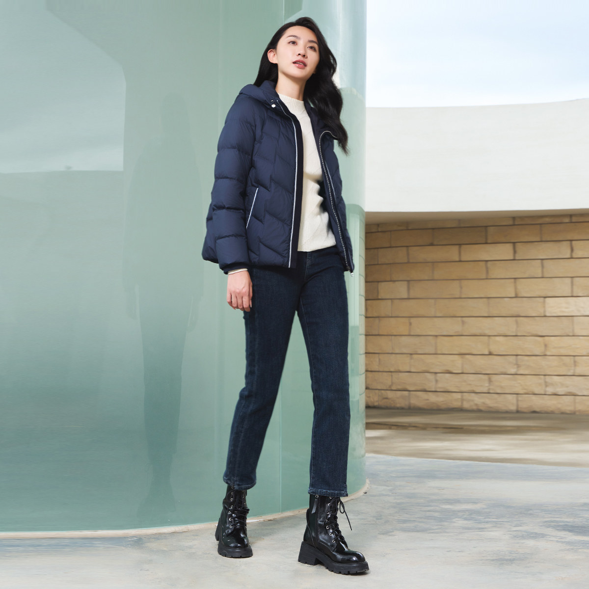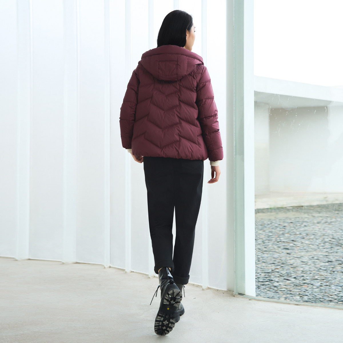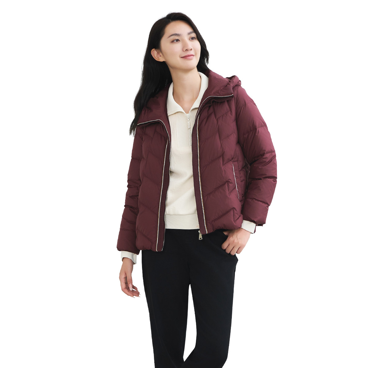 波司登新款 女连帽保暖错格压胶轻薄羽绒服时尚 便携 云感鹅绒