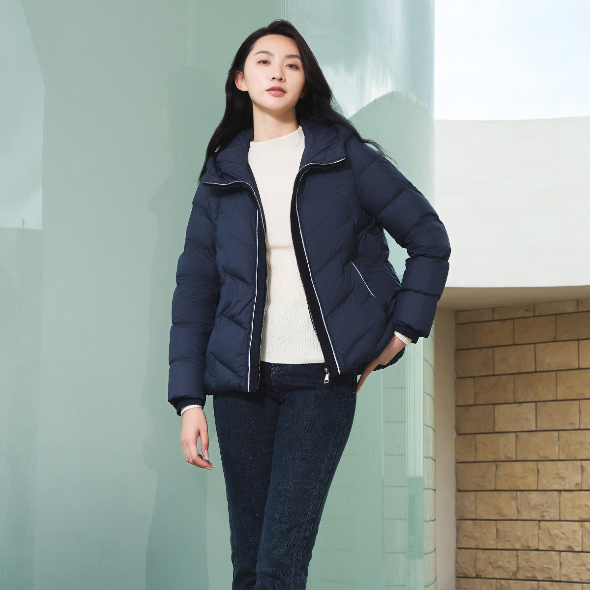 新款 云感鹅绒 波司登明星款 错格立领保暖外套 轻薄羽绒服女短款