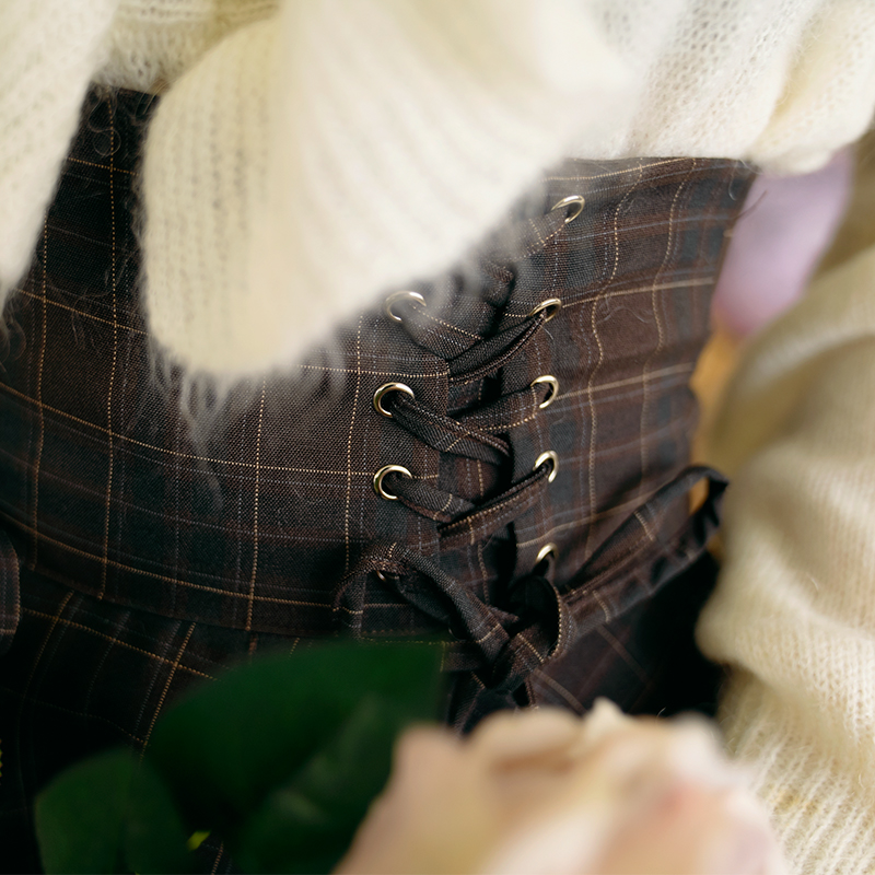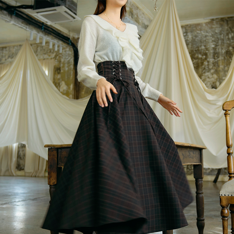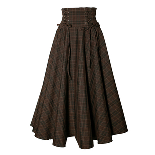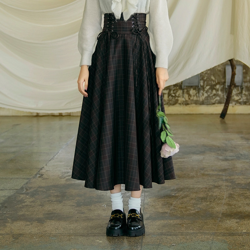 弥爱原创 宫廷复古束腰绑带格子半身裙大摆伞裙秋冬新 秋日舞会