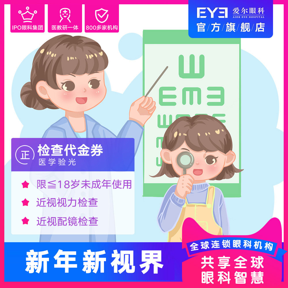 爱尔眼科儿童青少年近视眼镜验配医学验光检查代金券 视光