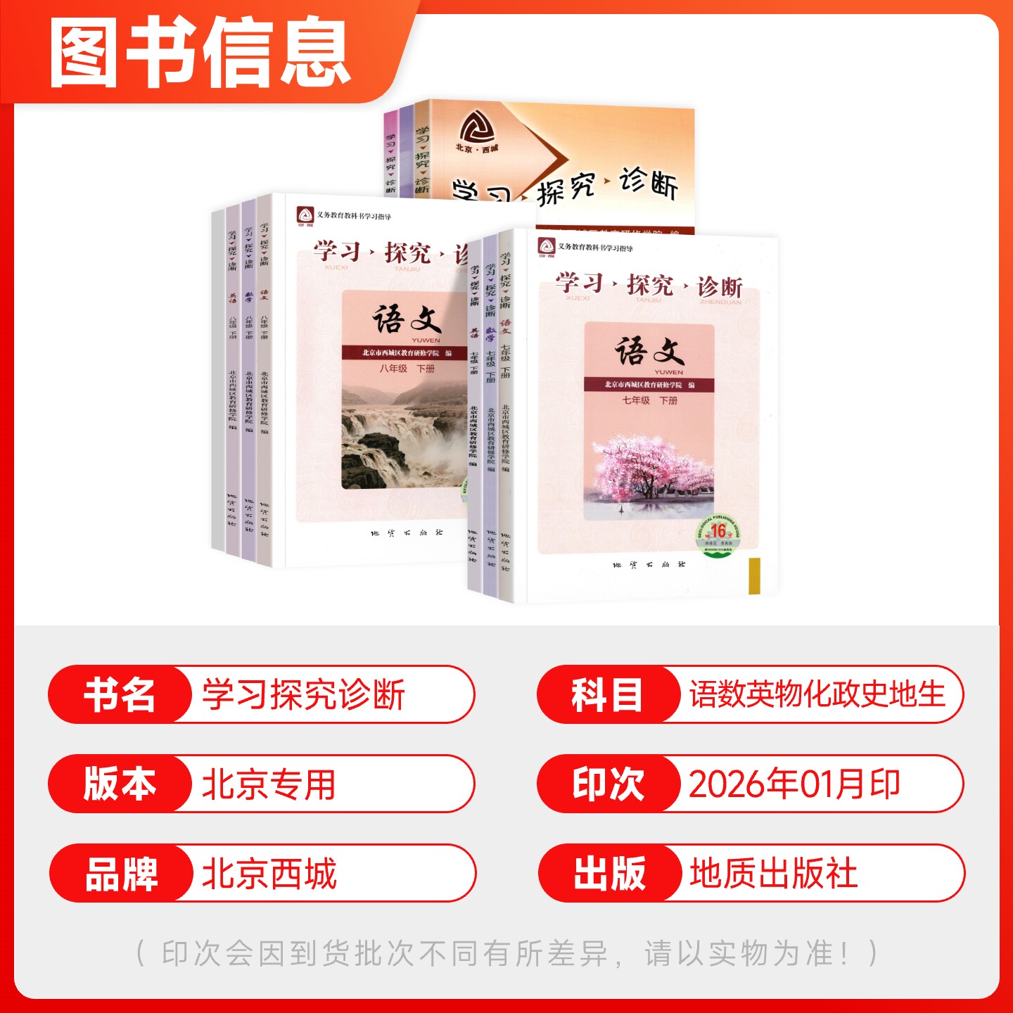 为您提供商品2026春第16版 基础知识同步检测练习 学探诊北京西城学习探究诊断七八九年级上下册初中语文数学英语物理化学生物历史地理道法大字版的详细介绍,