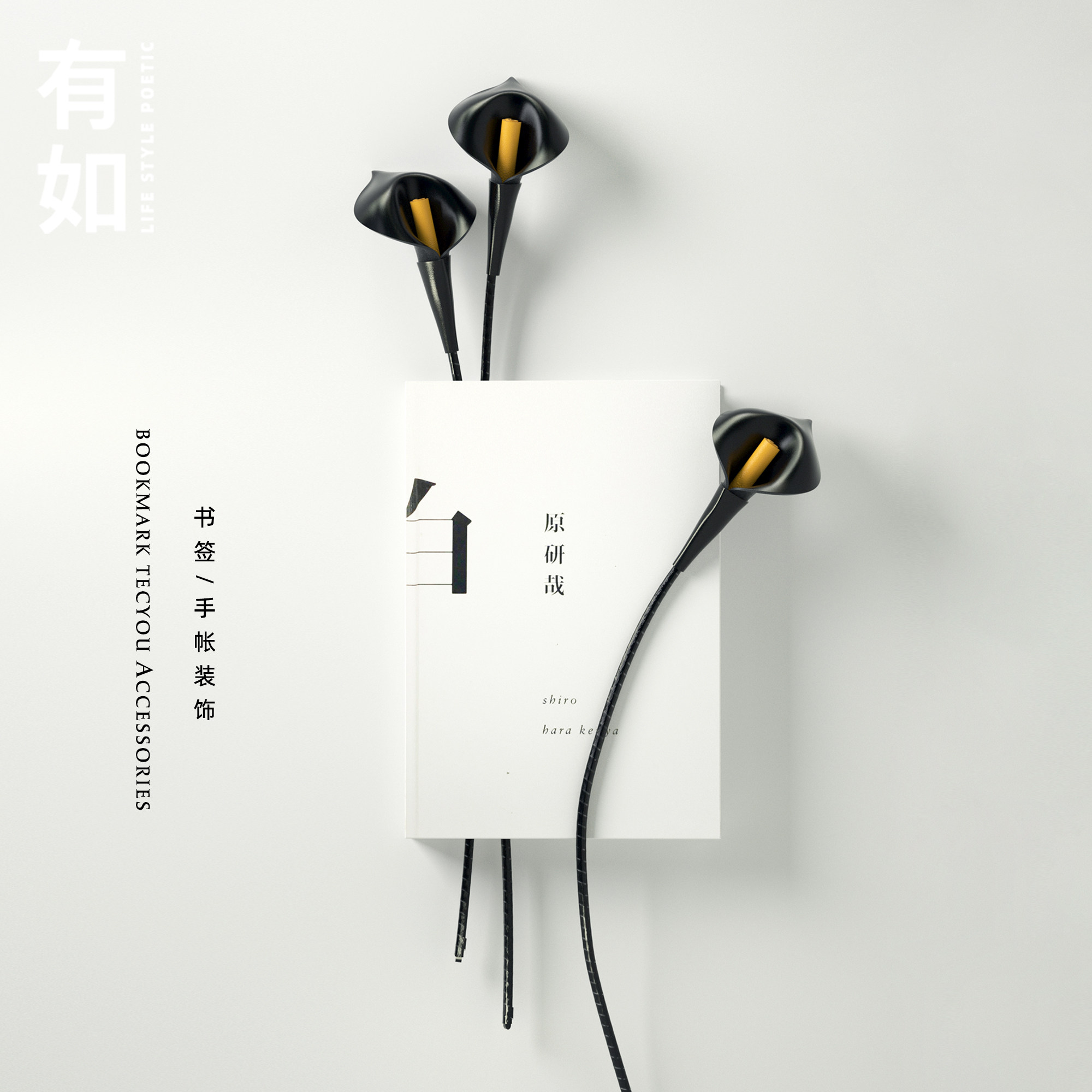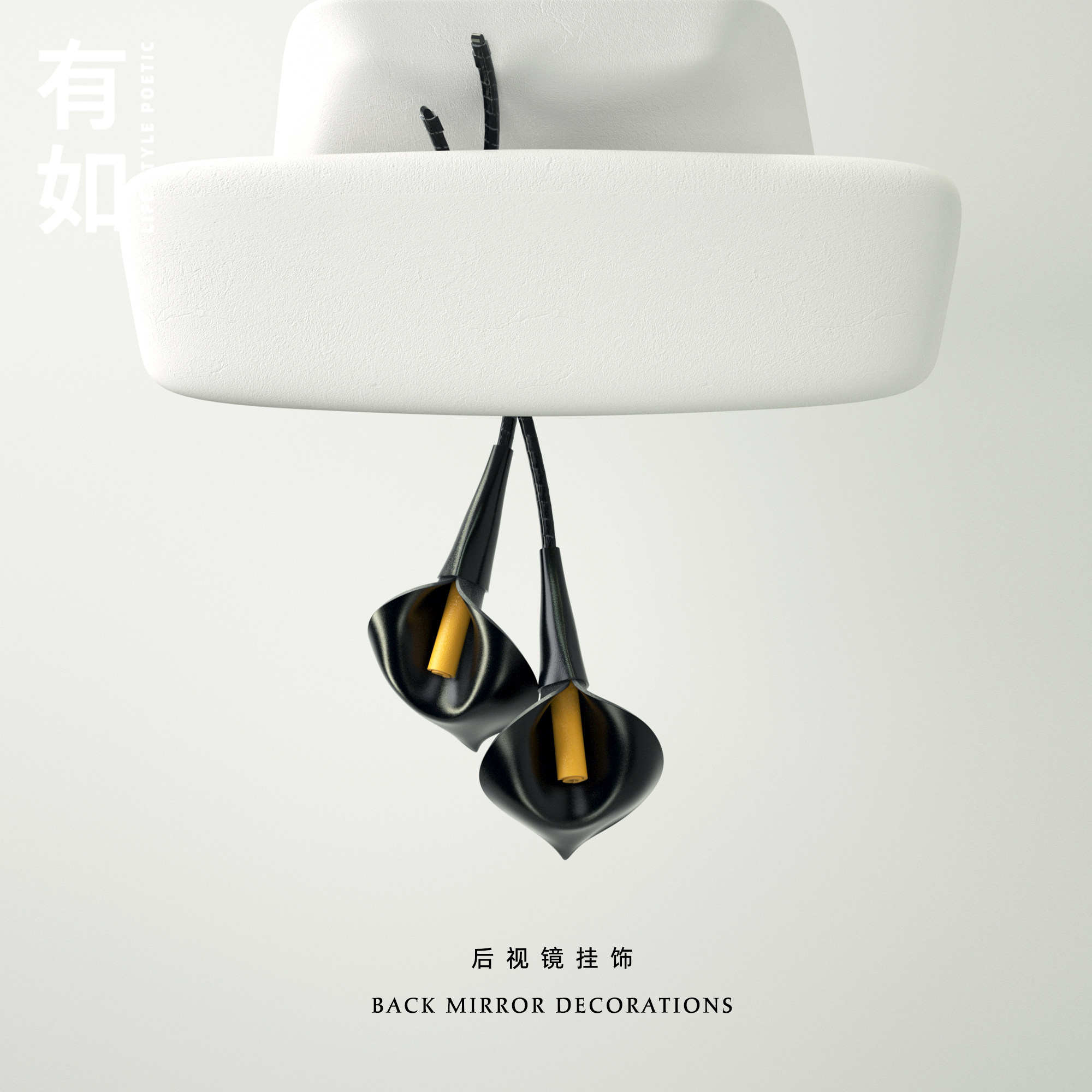 有如原创小众高级感黑色马蹄莲花朵真皮车挂书签包挂饰包包挂件由