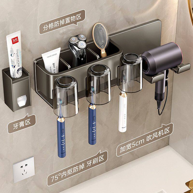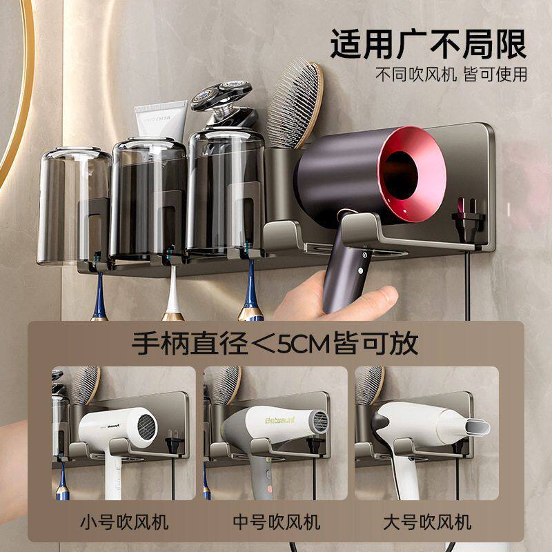 吹风机卫生间挂架置物架吹风机支架 打孔牙刷置物架牙刷架子壁挂式