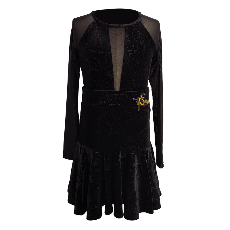 VaVa舞服高级感女童拉丁舞服秋冬新款 黑色丝绒练功表演出舞蹈服装