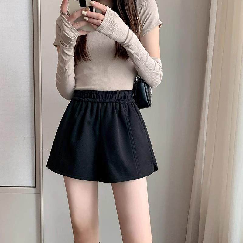 秋冬高腰宽松外穿a字打底休闲阔腿短裤 女2024新款 咖啡色毛呢短裤由