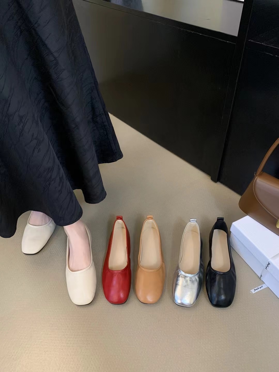 2026春新款 真皮 骄屿法式 复古波点玛丽珍鞋 黑色通勤浅口芭蕾单鞋