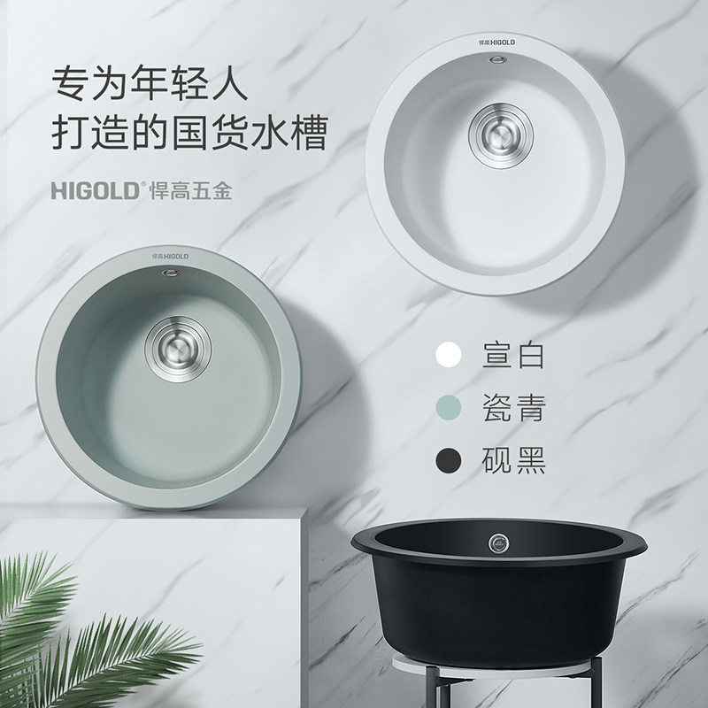 悍高厨房石英石水槽单槽食品级圆形水槽小户型洗菜洗碗盆 HIGOLD由