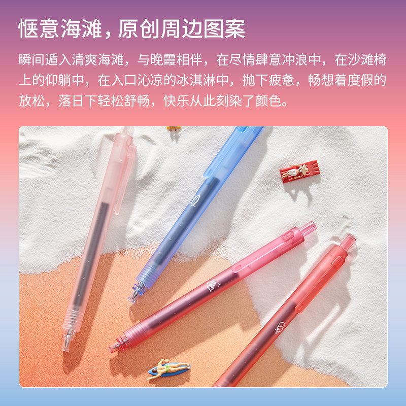 KACO菁点海洋3海滩落日速干中性笔4支装 高颜值学生学习大容量书写刷题笔文具顺滑创意ins风 0.5黑水笔按动式