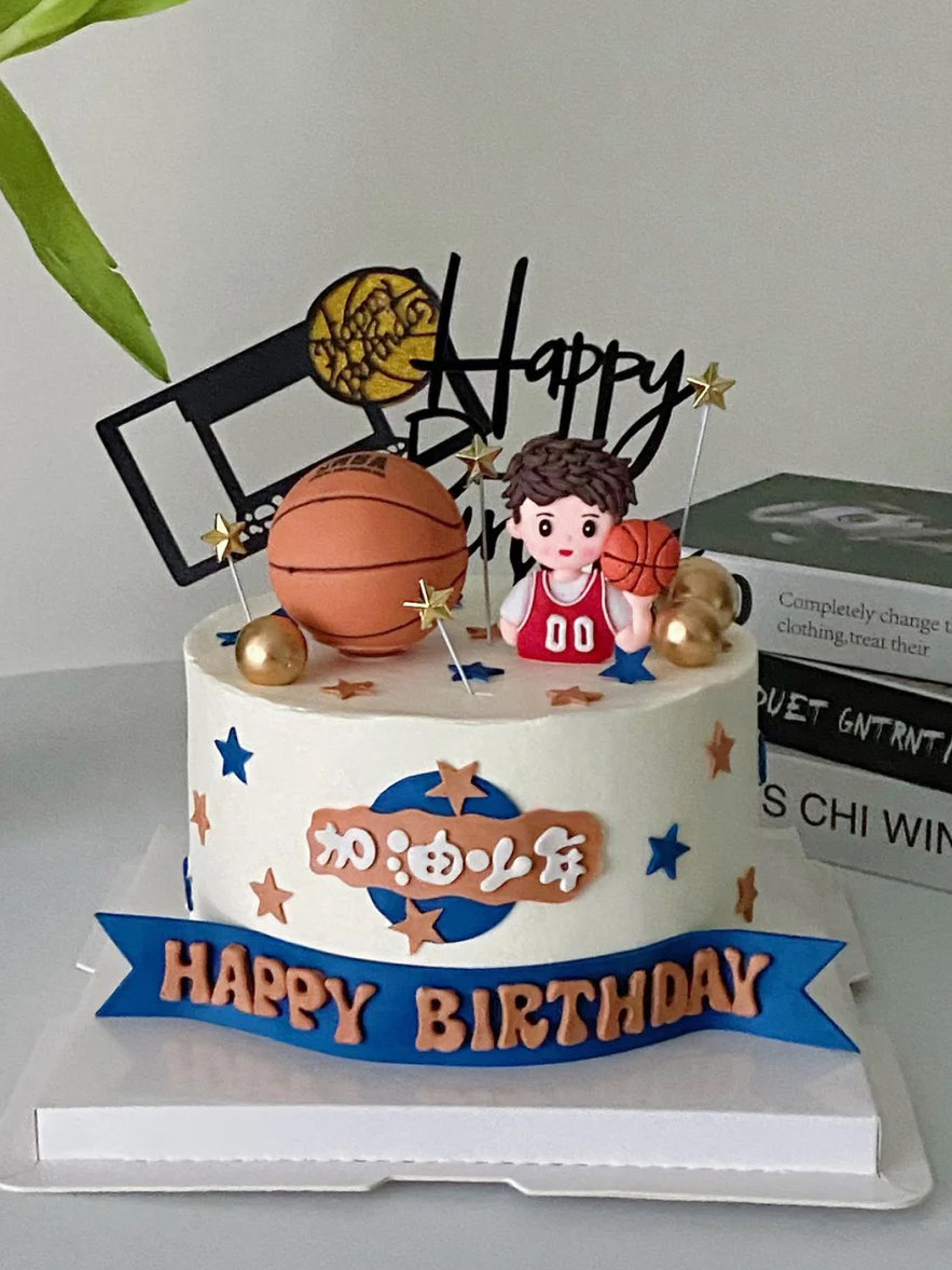 男孩男生打篮球球鞋 球框蛋糕插牌插件 饰 加油少年篮球小子蛋糕装由