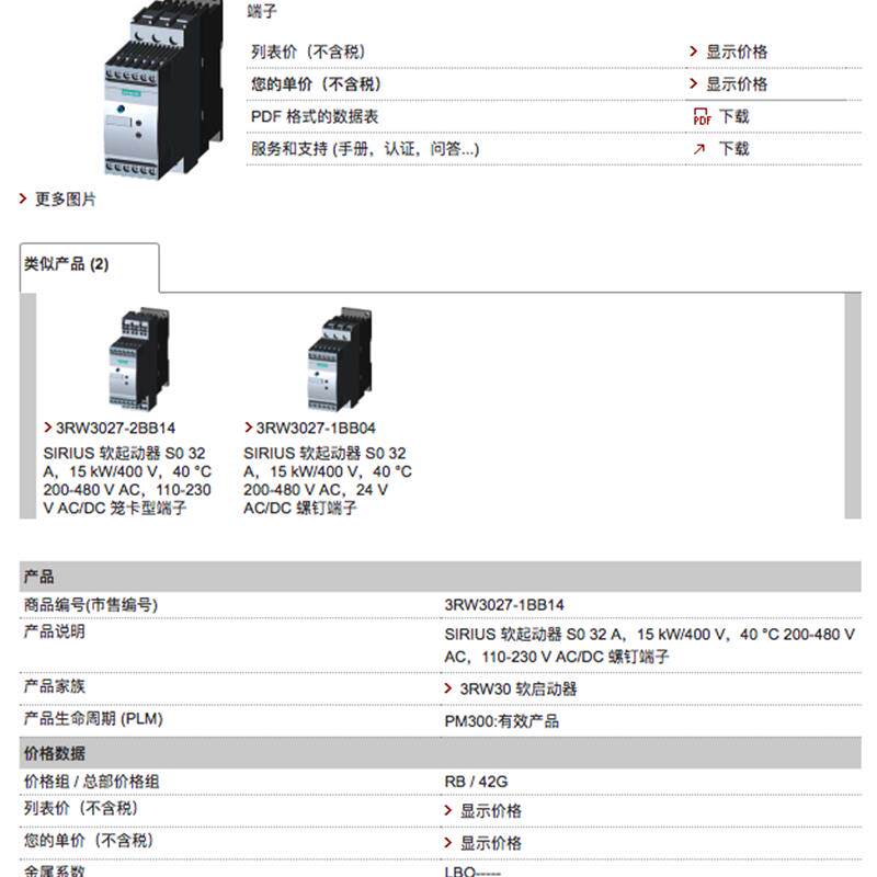 为您提供商品千瓦 软启动器 3RW30271BB14 15KW 32A 3RW3027 1BB14的详细介绍,