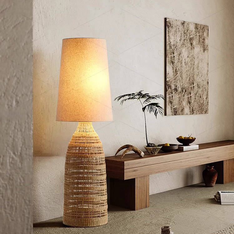侘寂风竹艺落地灯创意复古客厅卧室床头灯新中式 饰台灯 禅意民宿装