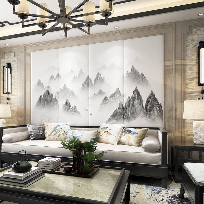软硬包酒店客厅卧室床头电视背景墙装 饰硬包靠背贴 新中式 极速新品由