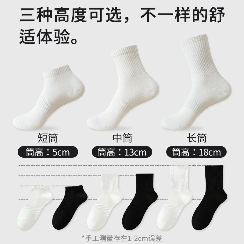 袜子男士 薄款 短袜黑白色男款 防臭运动春秋长袜 夏天纯棉中筒袜夏季