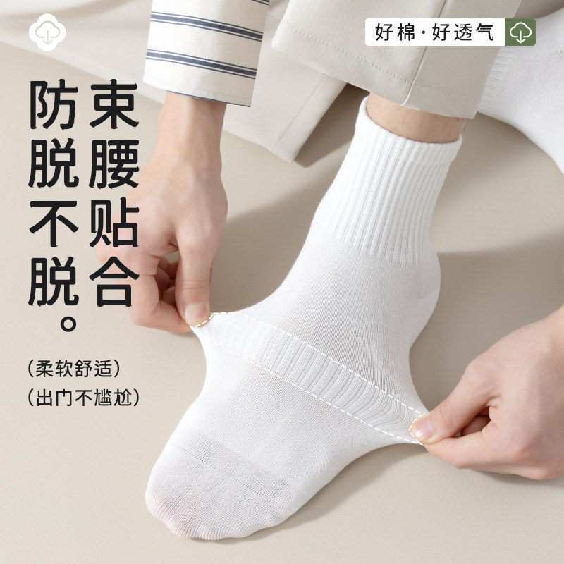 佐印男士 夏薄纯棉纱线中筒7a抗菌男生运动毛巾底白色长袜 袜子男款