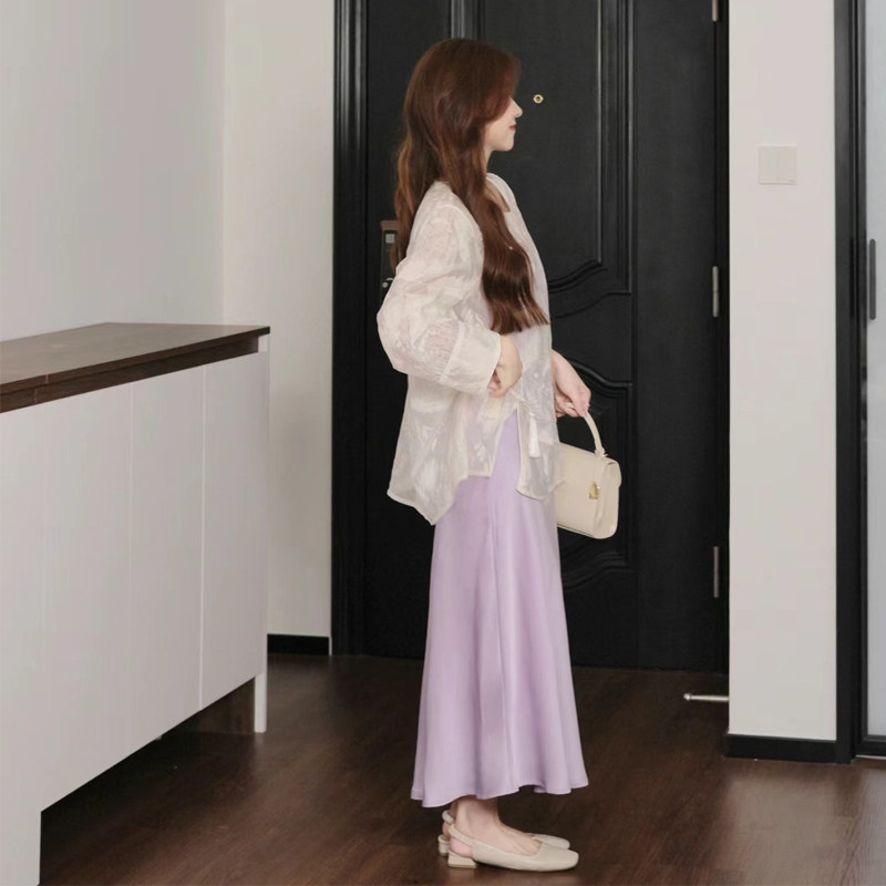新款 新中式 国风套装 裙女夏季 吊带连衣裙两件套 高级感提花蕾丝衬衫由