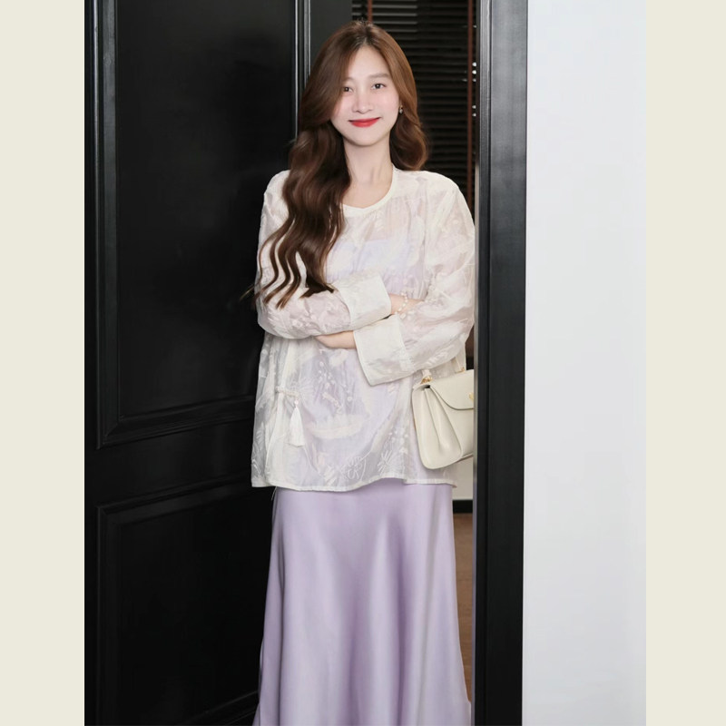 新款 新中式 国风套装 裙女夏季 吊带连衣裙两件套 高级感提花蕾丝衬衫