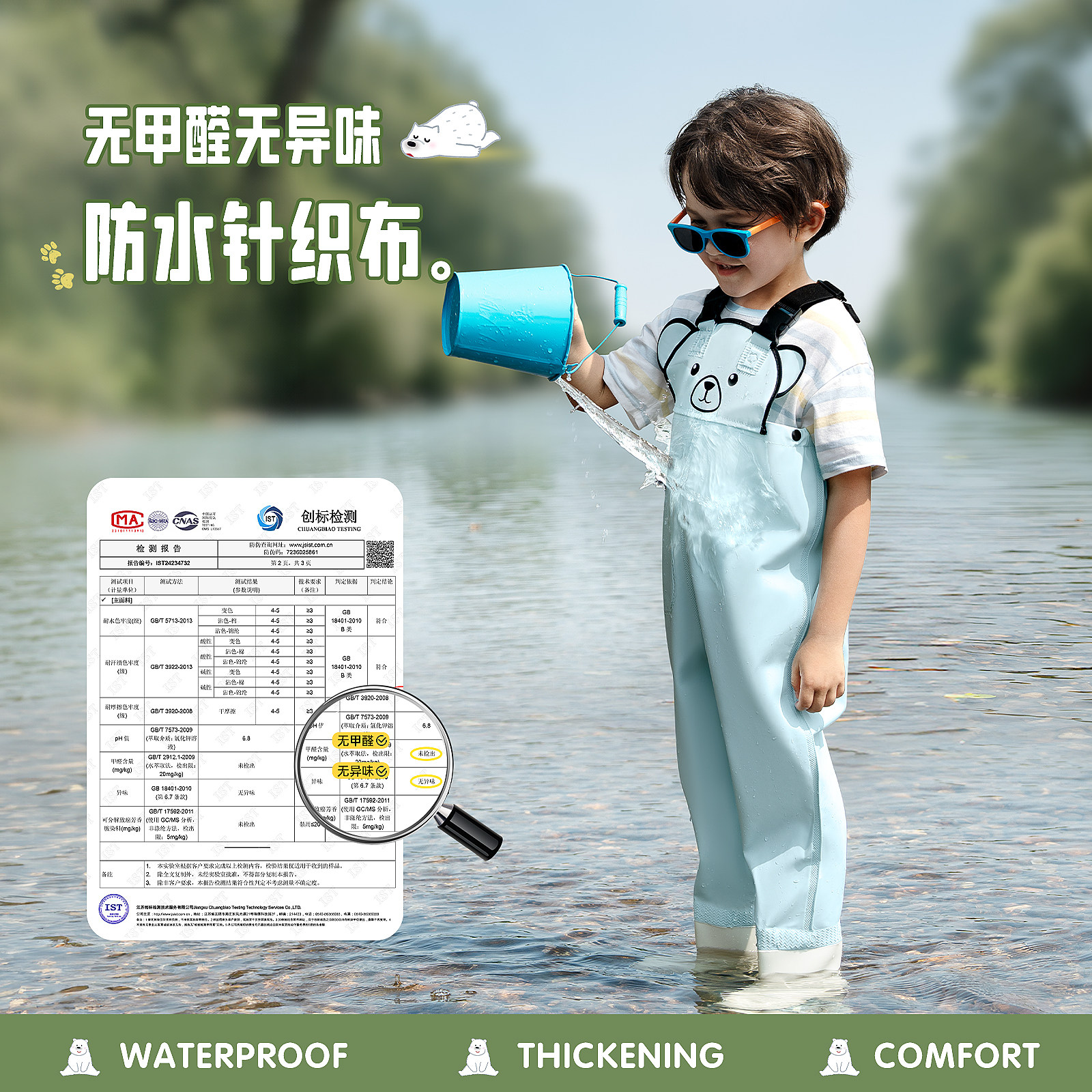 为您提供商品儿童玩水赶海连体衣服涉水下水裤 雨鞋 一体幼儿园玩沙装 备 防水雨裤的详细介绍,