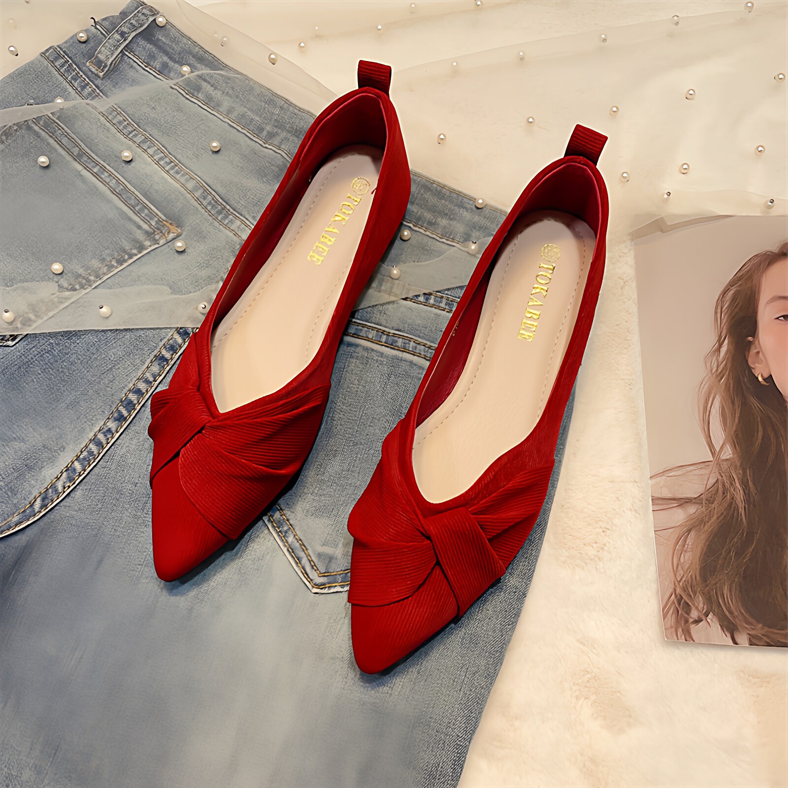 2026春季 红色单鞋 平底鞋 豆豆鞋 女尖头瓢鞋 浅口软底法式 女婚鞋 新款