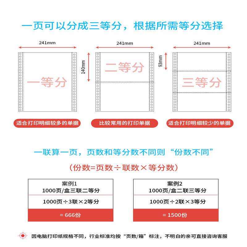 为您提供商品电脑打印纸整张1000页一二三四五联二三等分出库送货清单凭证 针式的详细介绍,