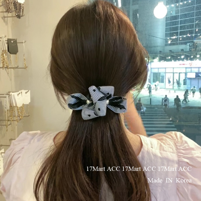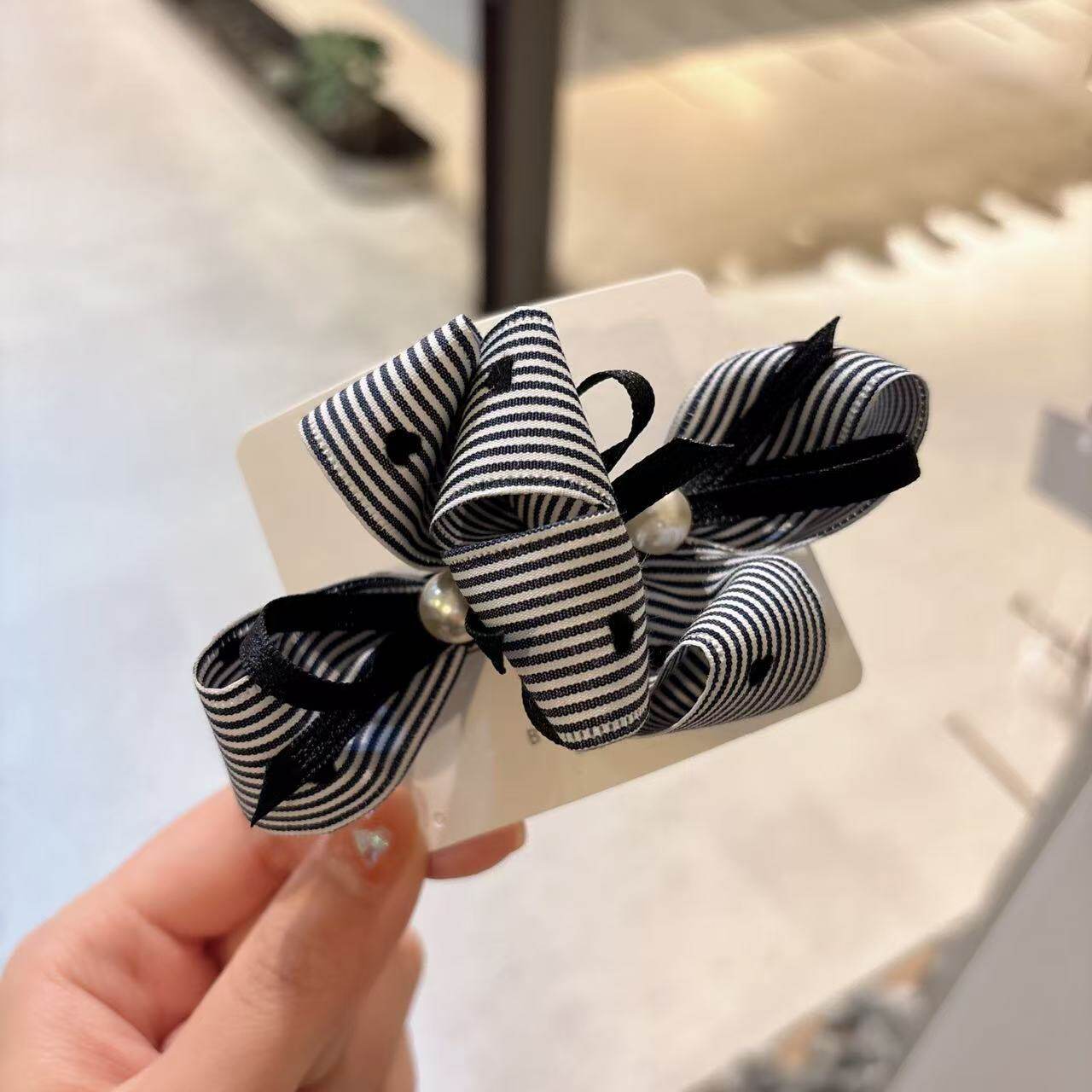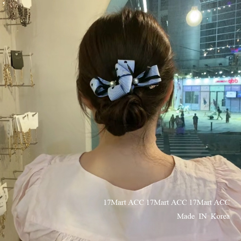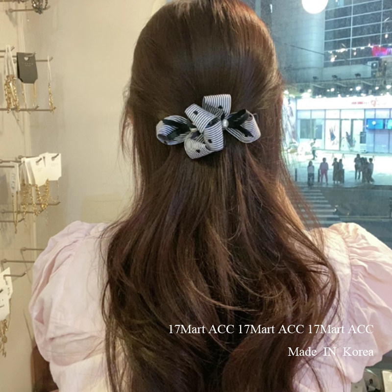 6.10韩国东大门baket发饰条纹珍珠蝴蝶结弹簧夹侧边夹