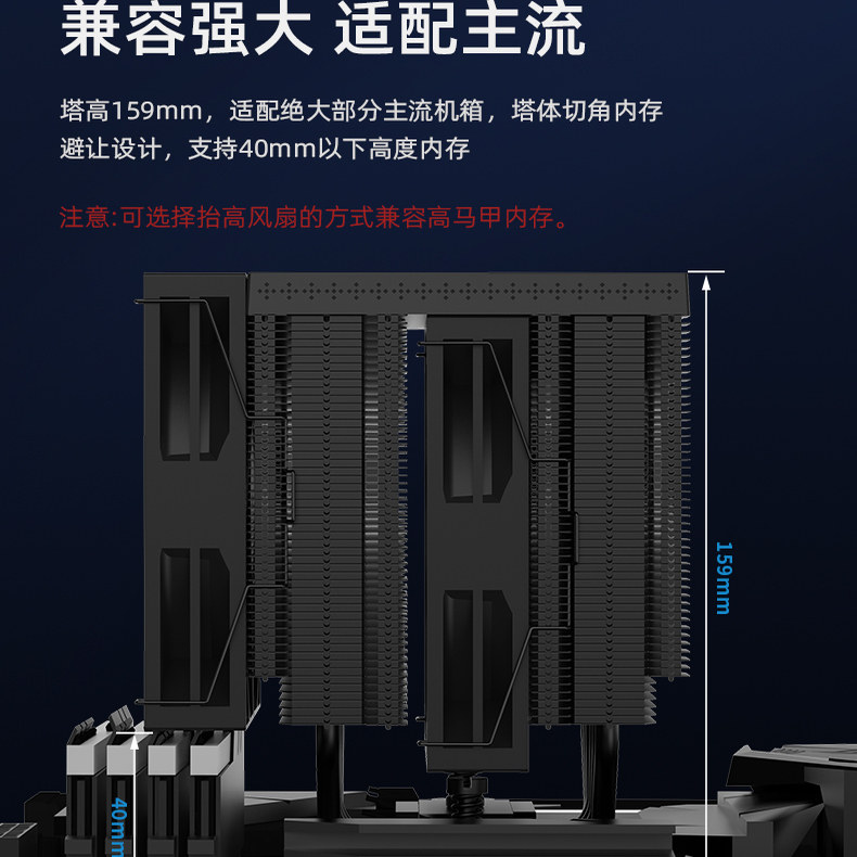 酷里奥B60T 2.8英寸屏幕视频CPU散热器双风扇风冷散热器6热管 LCD