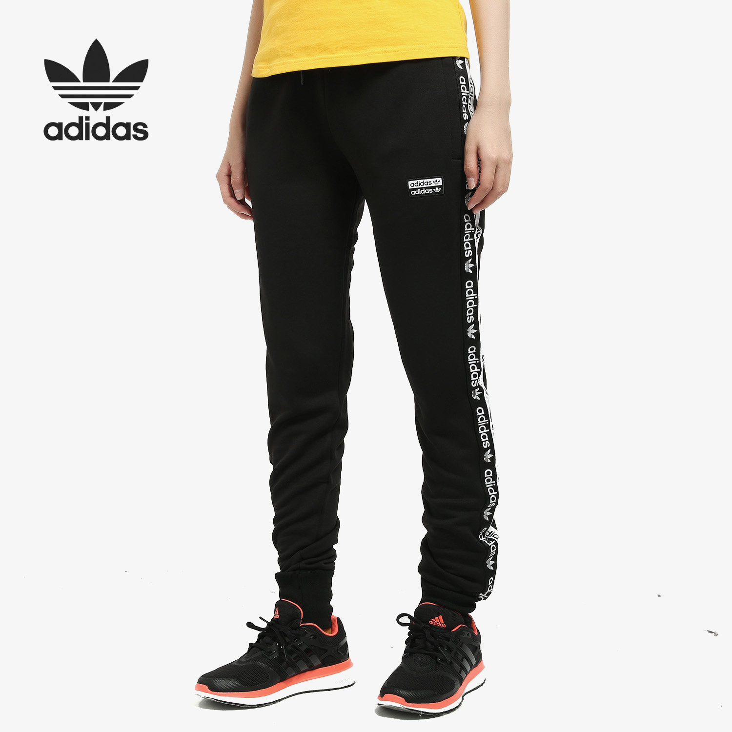 女宽松抽绳高腰直筒休闲瑜伽健身跑步训练撞色 奔跑吧卡卡运动长裤