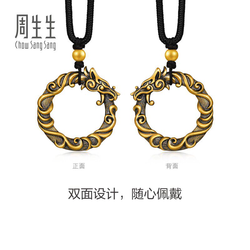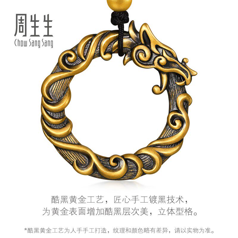 周生生华宇足金古法黄金酷黑系列龙形衔尾蛇颈饰项链90639Z计价由