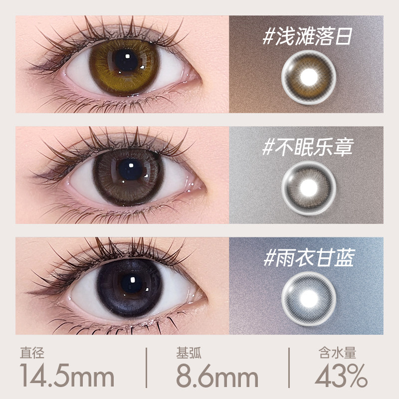 moody美瞳月抛精选系列冷泡乌龙茶彩色隐形眼镜大小直径2片旗舰店