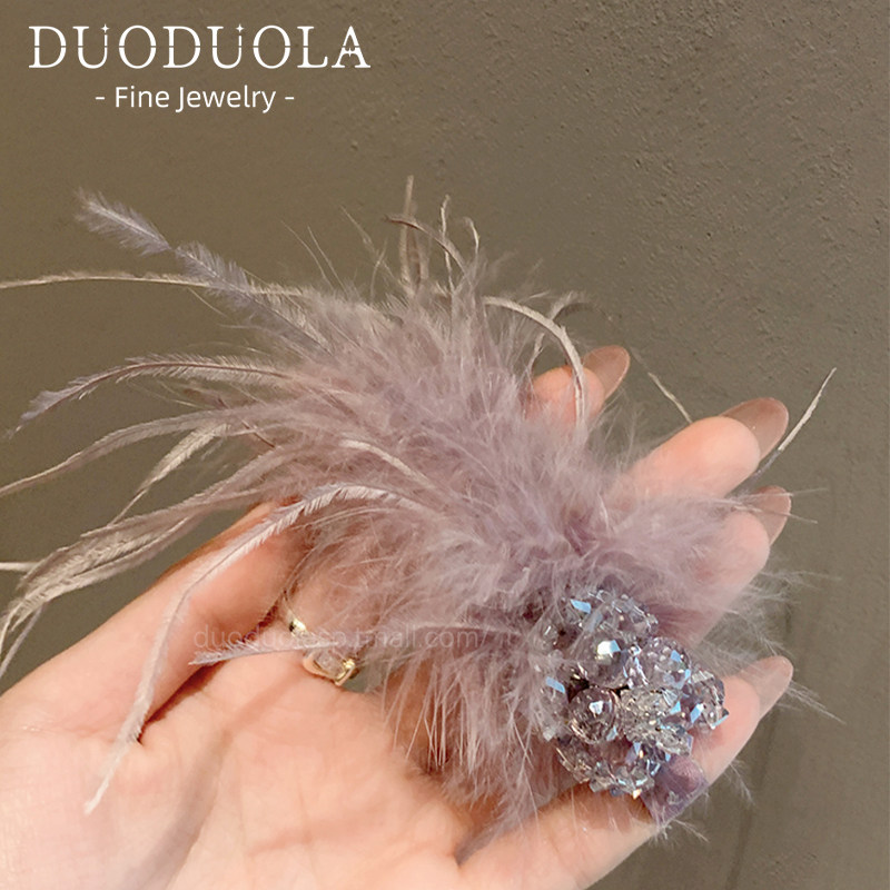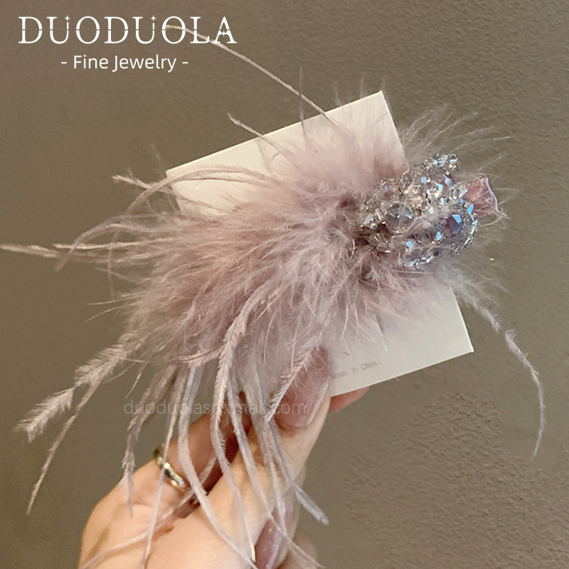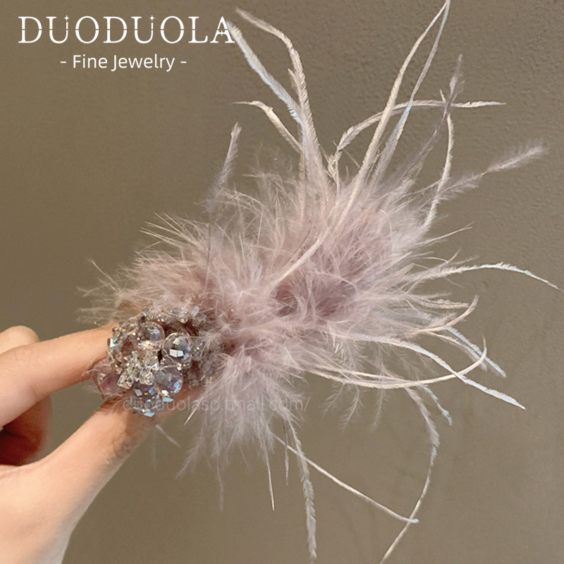 超仙紫色羽毛水钻发夹氛围感羽毛头饰日常百搭鸭嘴夹甜美发卡边夹
