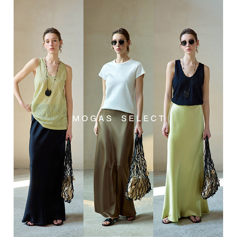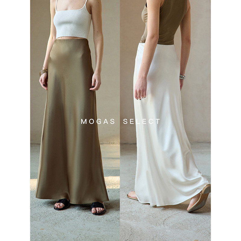为您提供商品Mogas丝滑松弛感 半身裙女春 重磅双面缎醋酸斜裁灵动鱼尾显瘦长款的详细介绍,