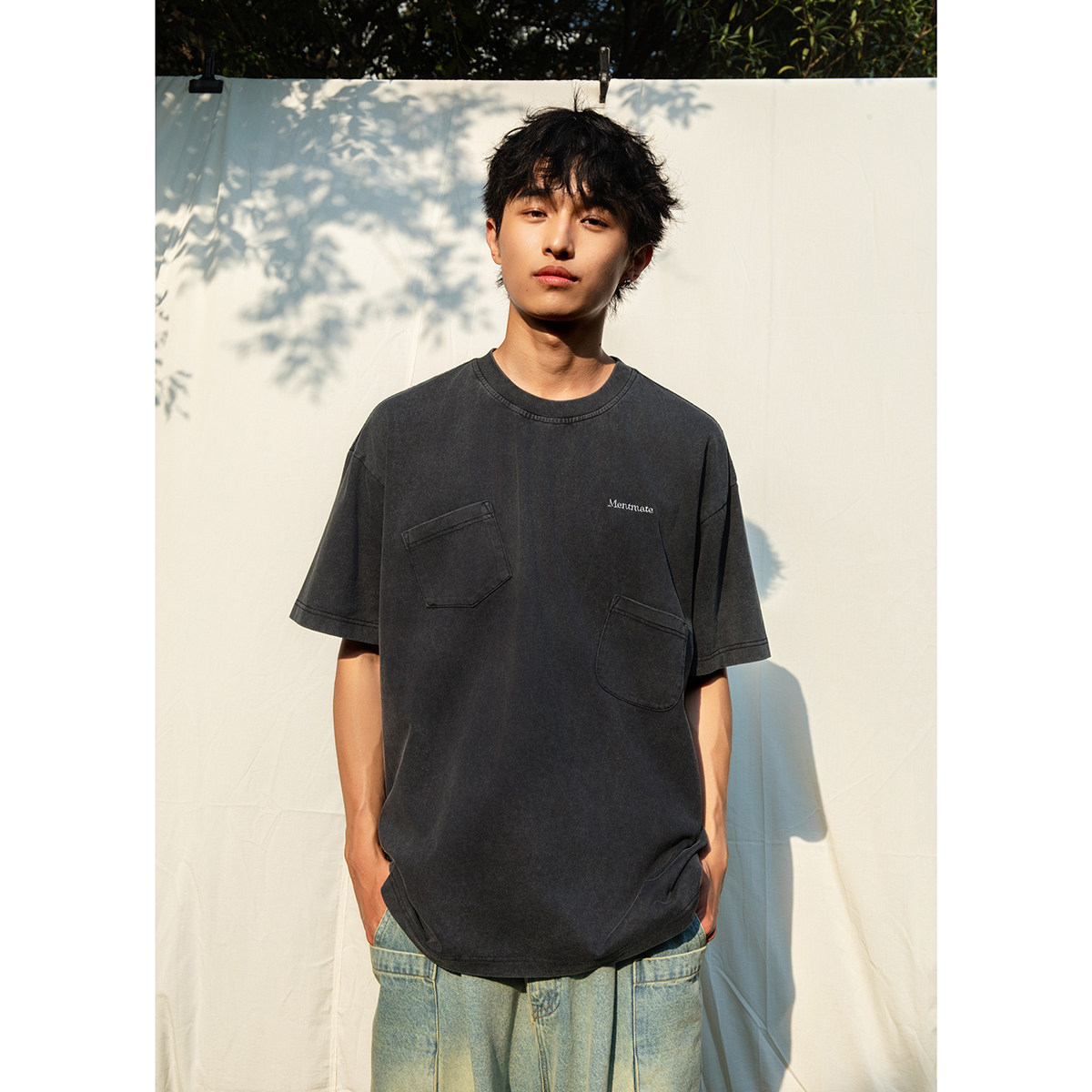 炒色做旧复古tee 不规则口袋小众宽松BFT恤男女夏 25SS Mentmate