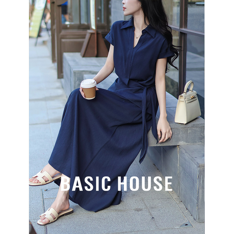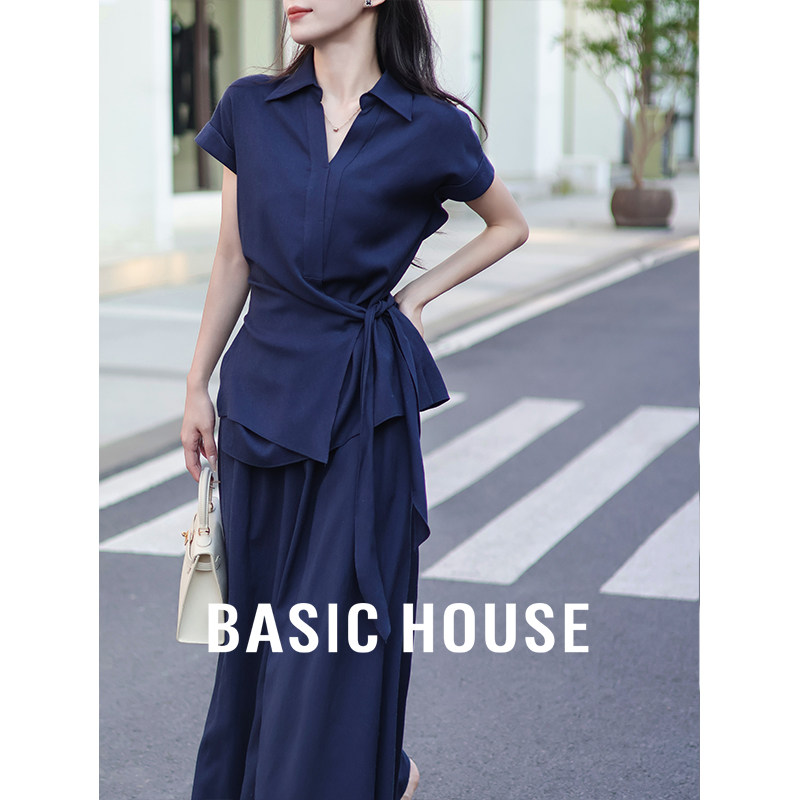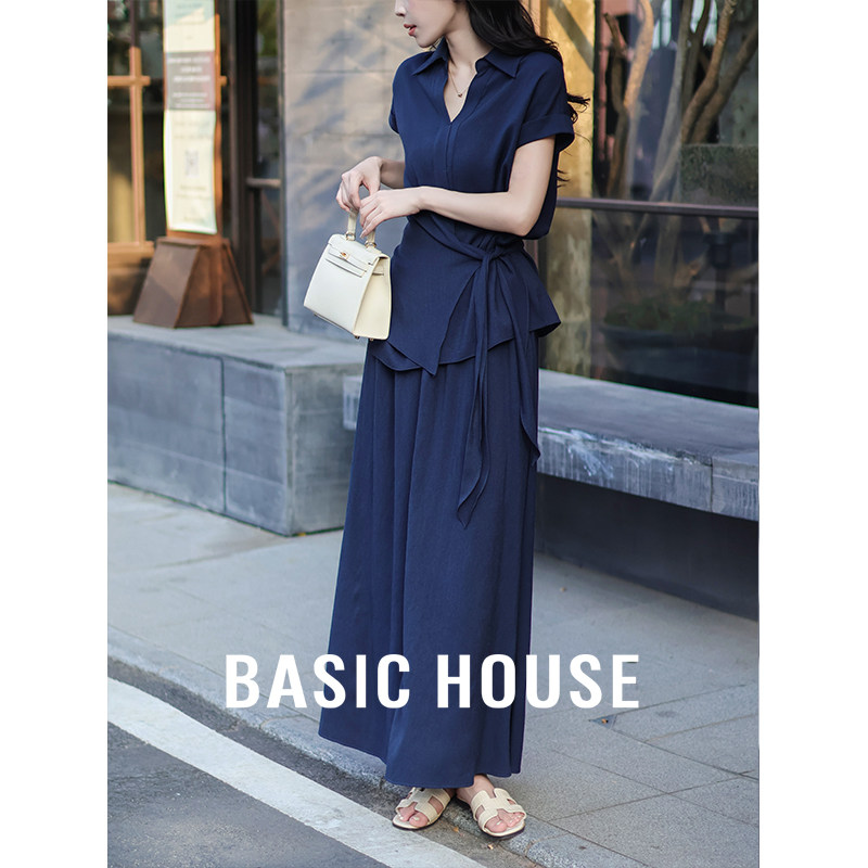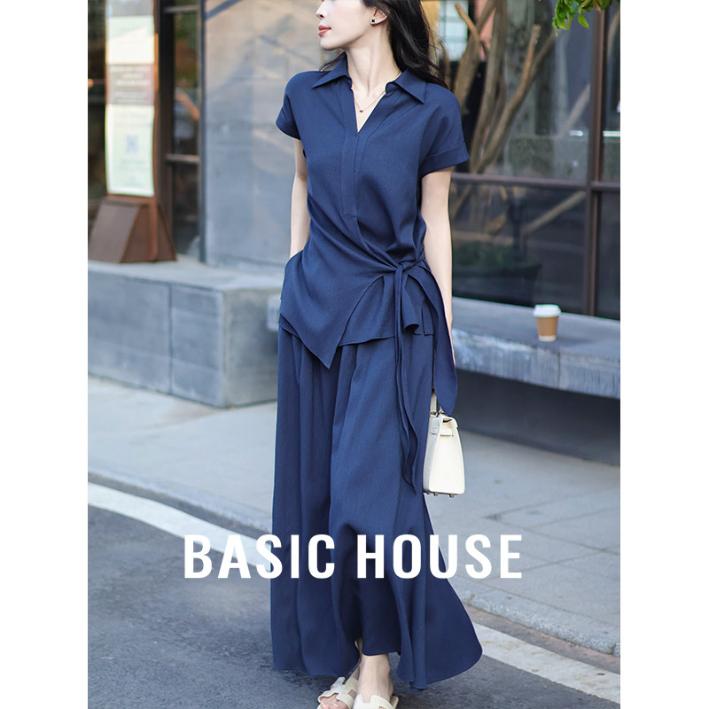 Basic 百家好polo领衬衫 不规则绑带半身裙高级感两件套装 女 House