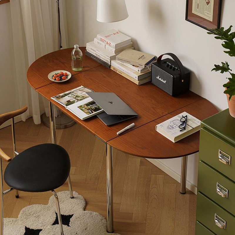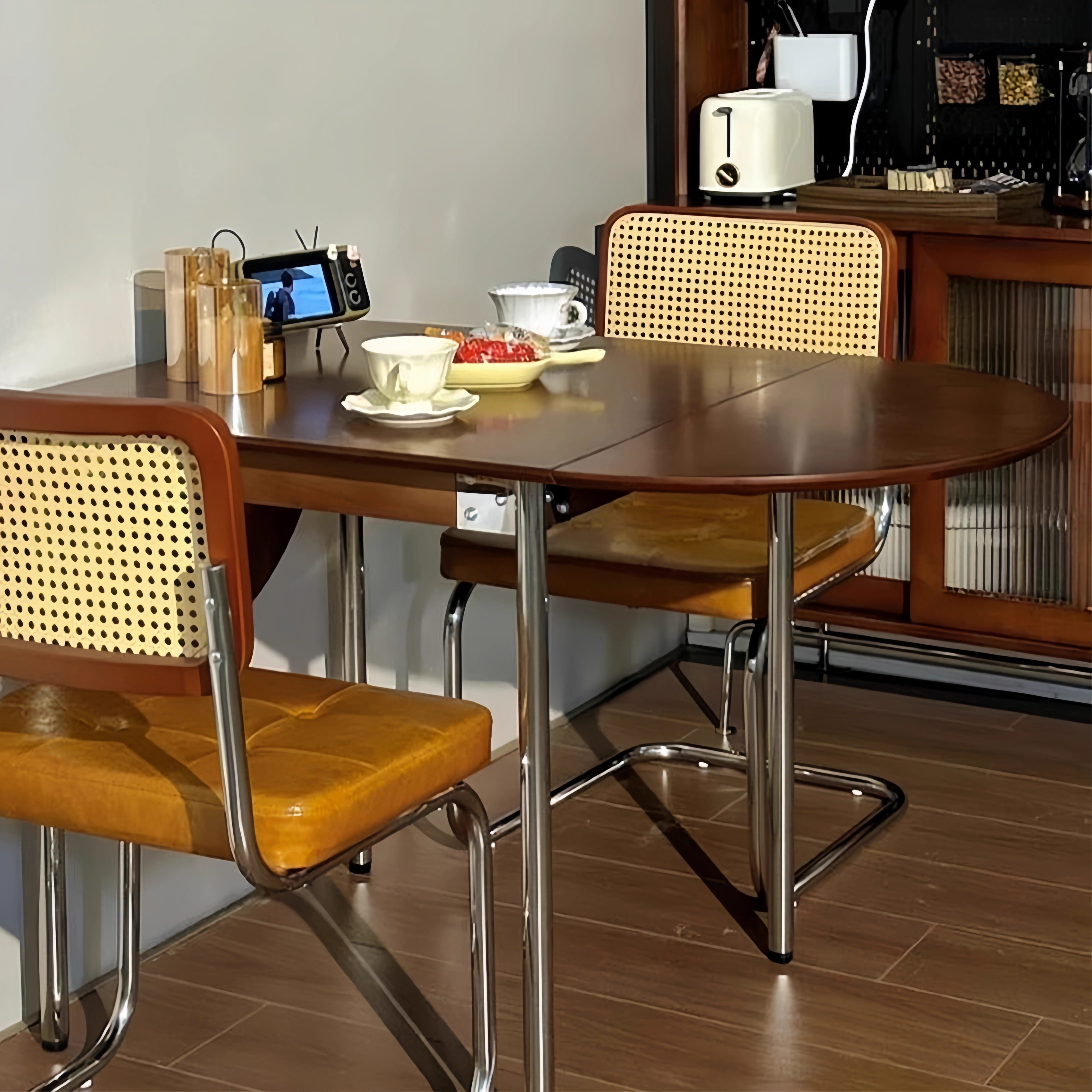 复古 中古风实木餐饭桌家用小户型客厅阳台休闲可折叠伸缩书桌法式