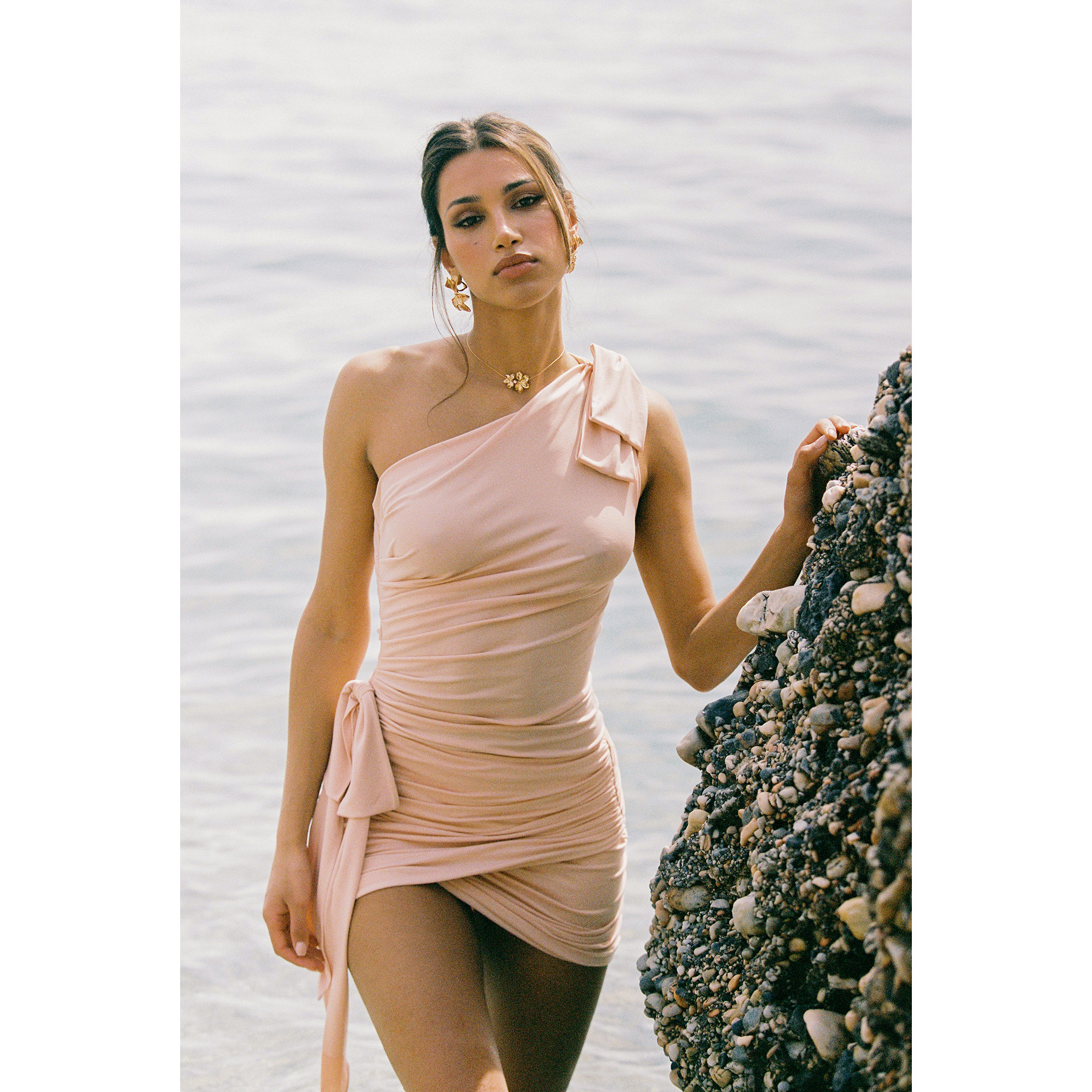 为您提供商品时尚 Nana Jacqueline 25夏季 蝴蝶结抽褶飘带高弹单肩上衣 套装的详细介绍,