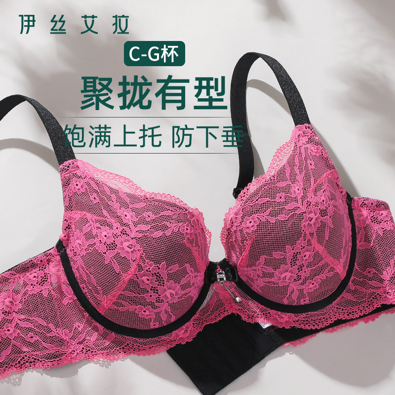 胖MM文胸 伊丝艾拉大胸显小胸内衣性感蕾丝调整型防下垂收副乳大码由
