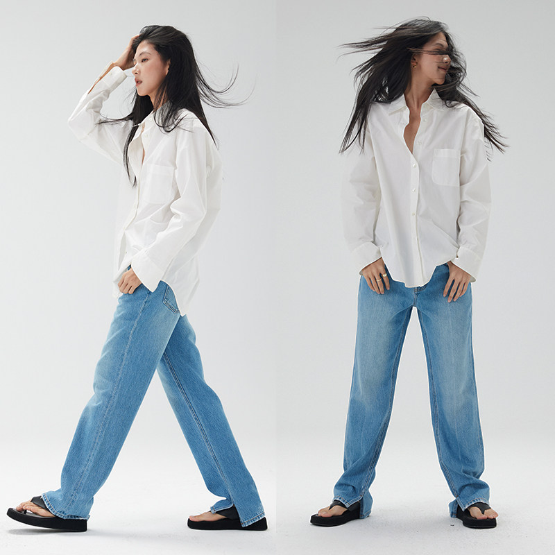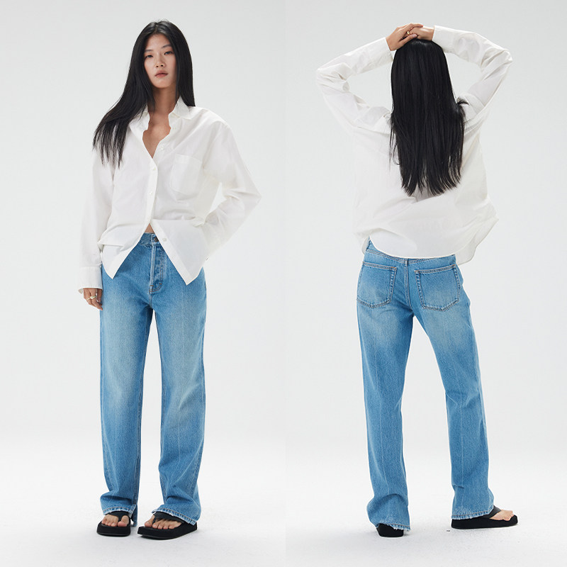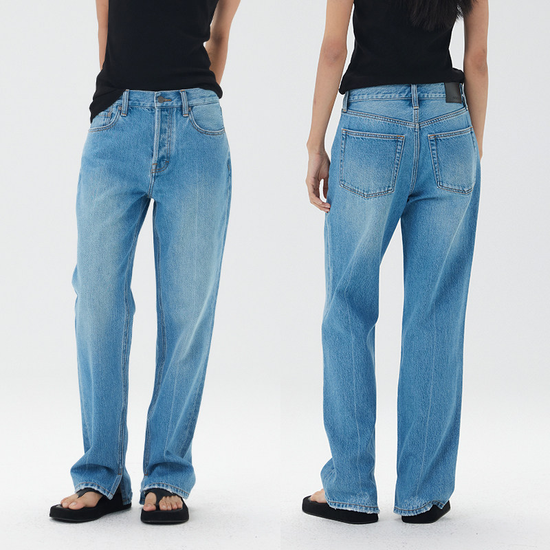 中高腰宽松2025秋冬新款 NO93复古美式 牛仔裤 女直筒裤 子 开叉长裤