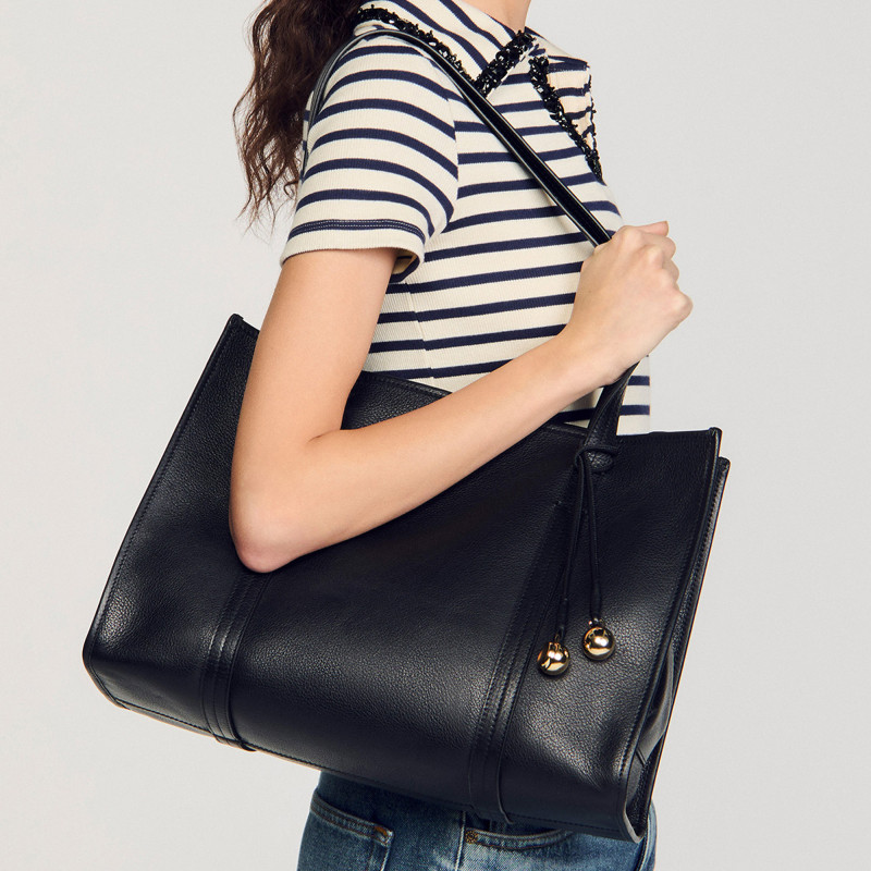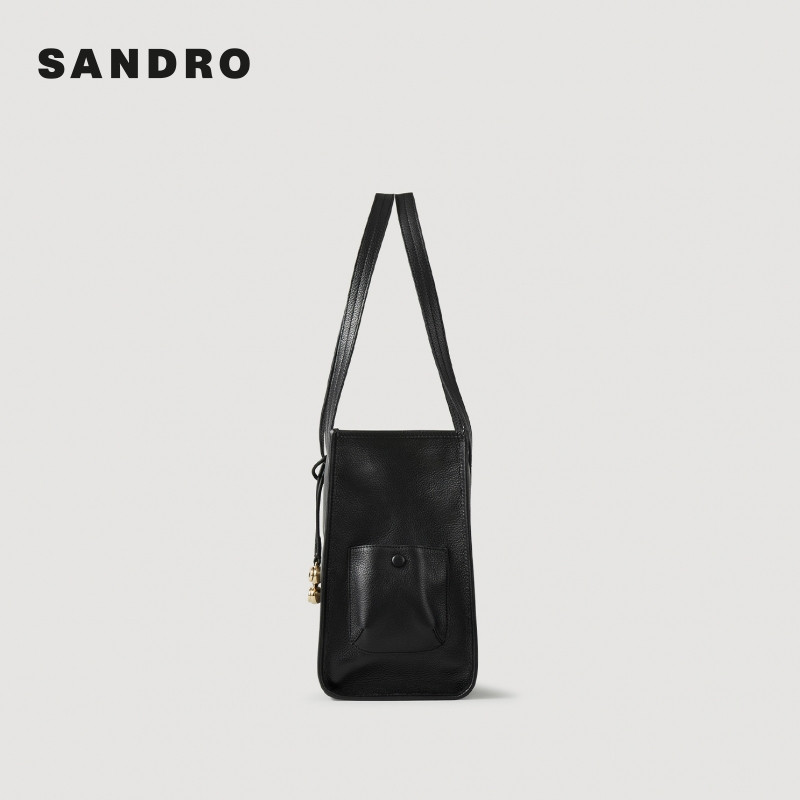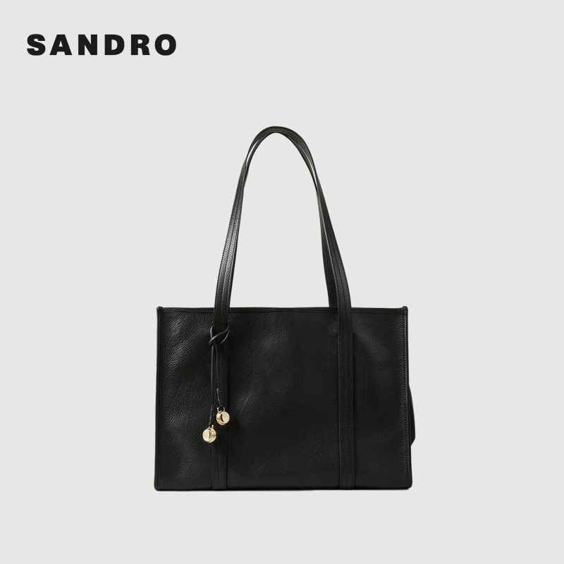 季 款 女士皮质黑色经典 方形托特包手提包 末7折SANDRO2025秋冬经典由