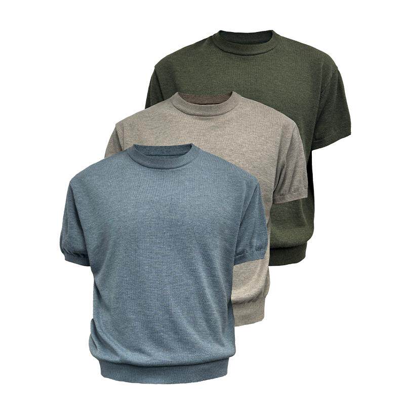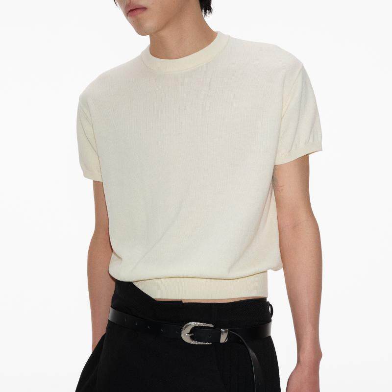 短袖 TOP针织修身 KNIT 六色入 合体修身 螺纹下摆 小领口 JCAESAR
