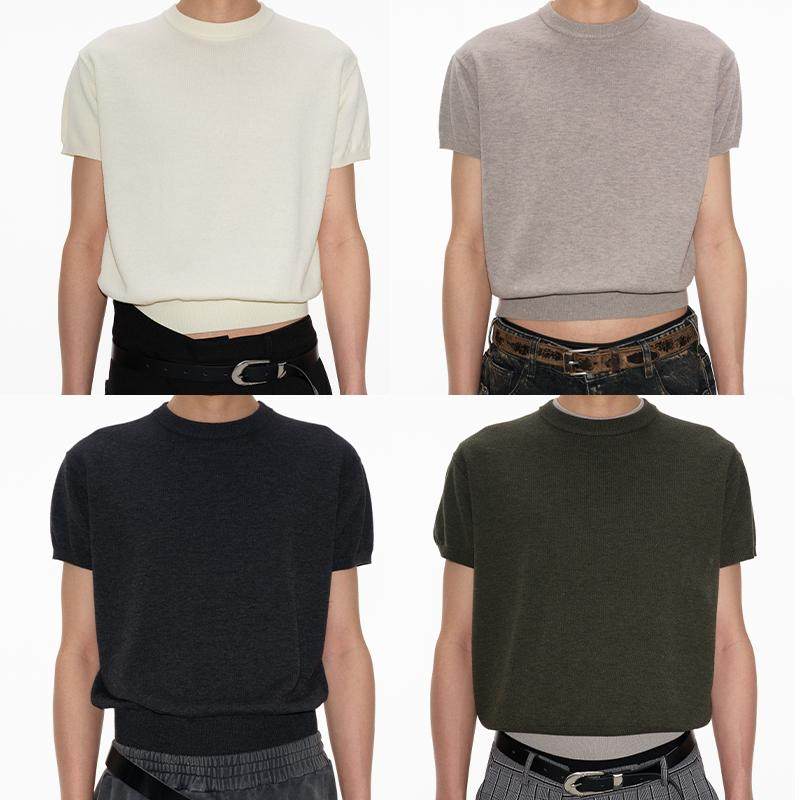 短袖 TOP针织修身 KNIT 六色入 合体修身 螺纹下摆 小领口 JCAESAR由