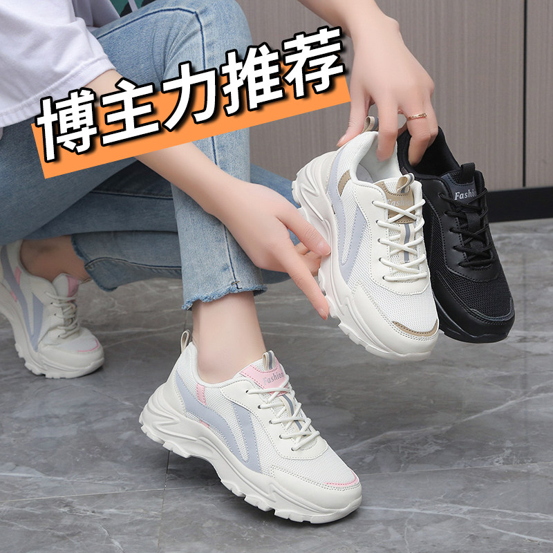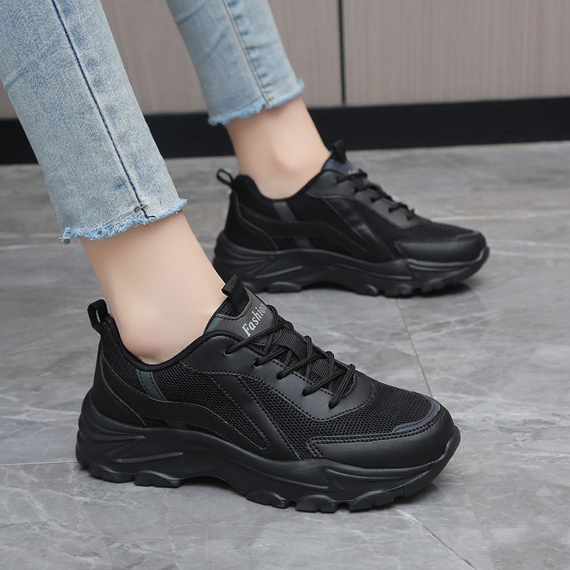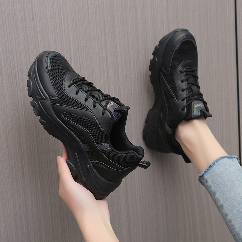 34老爹鞋 全黑色运动鞋 女小码 春 网面透气上班不累脚工作防滑鞋由