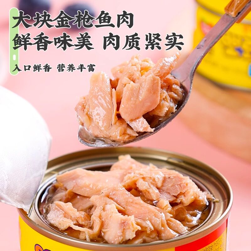 金枪鱼罐头水浸油浸纯肉即食吞拿鱼健康海鲜熟食健身代餐下饭鱼类