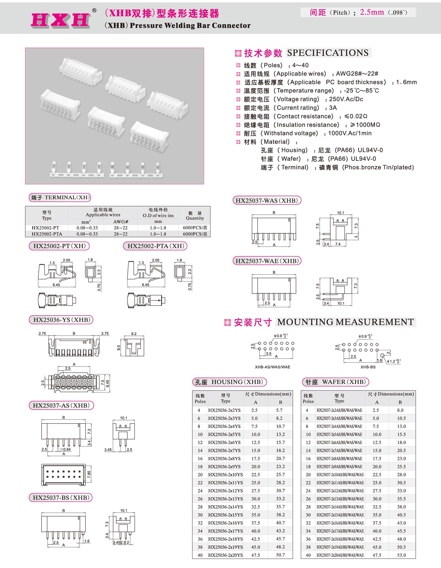 XH2.54MM接插件连接器 20P 插头直 弯针插座接线端子插拔式