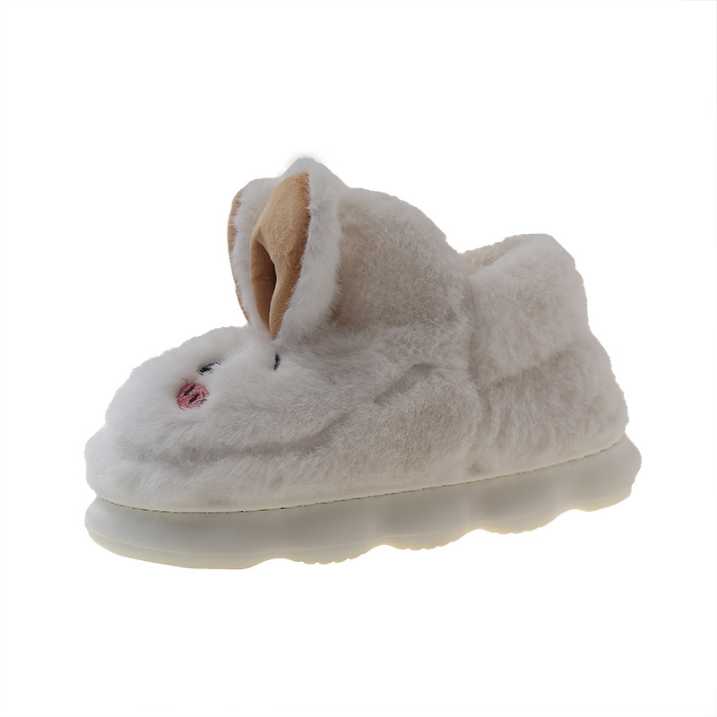 室内居家可爱兔子毛绒保暖外穿厚底防滑包跟棉鞋 女冬季 高帮棉拖鞋